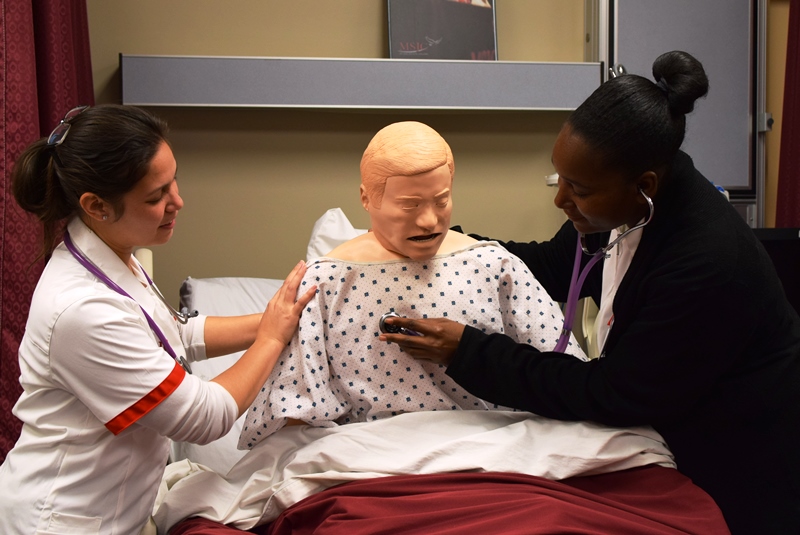Fourth semester nursing students Destiny Owsley (left) and Tichona White (right) check